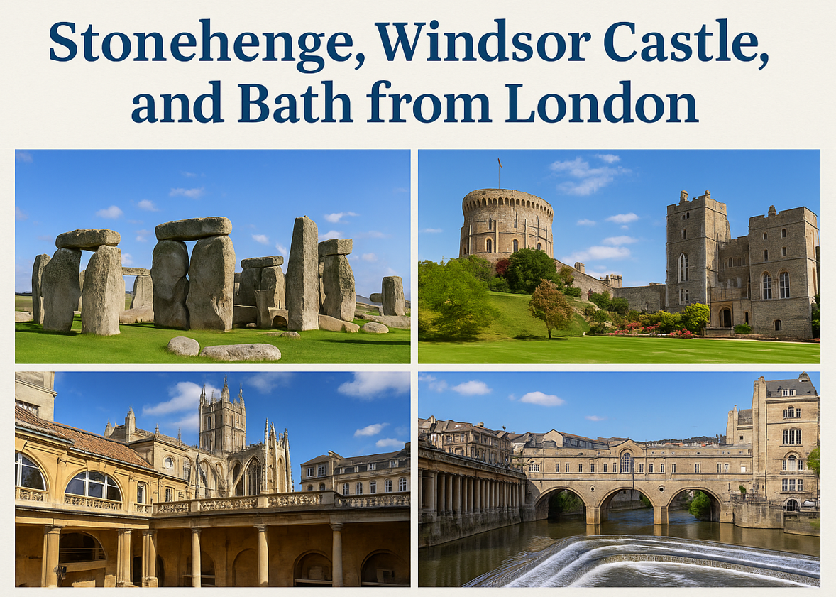 A day trip to Stonehenge, Windsor Castle, and Bath from London is more than sightseeing — it’s a journey through 5,000 years of British history. From ancient stones to regal castles and Roman marvels, this experience offers an unforgettable snapshot of England’s soul.